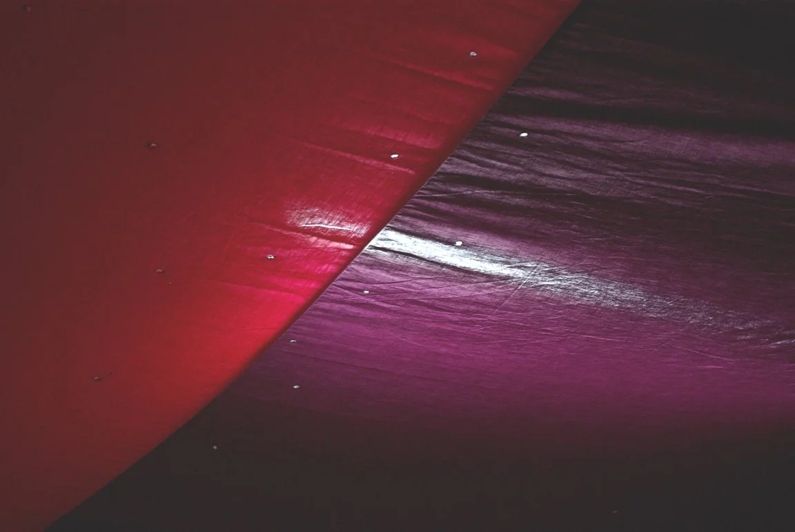 Coloured cotton bed sheets sewn together with thread and burnt with cigarettes.